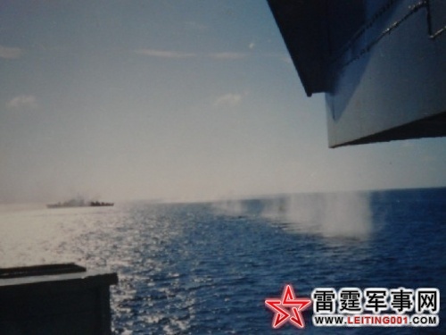 “舰速18节,编队前进!”在南中国海,我舰劈开层层波浪,又开船正常地巡逻起来。舰上,“八一”军旗在桅杆上猎猎作响,迎风招展.