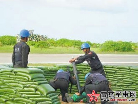 图为太平岛海巡部队中陆战队完训的台军官兵,正在操作81迫击炮的画面