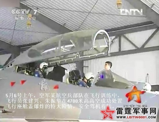 5月6号上午,空军某航空兵部队在飞行训练中,飞行员张建兴、朱振华在4700米高高空成功处置飞行座舱盖爆炸的特大险情,安全驾机着陆。